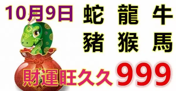 10月9日大吉的九大生肖:貴人運,偏財運,頭獎運