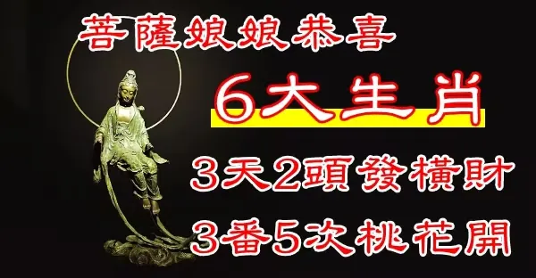 菩薩娘娘恭喜6大生肖,3天2頭發橫財,3番5次桃花開,旺不停!