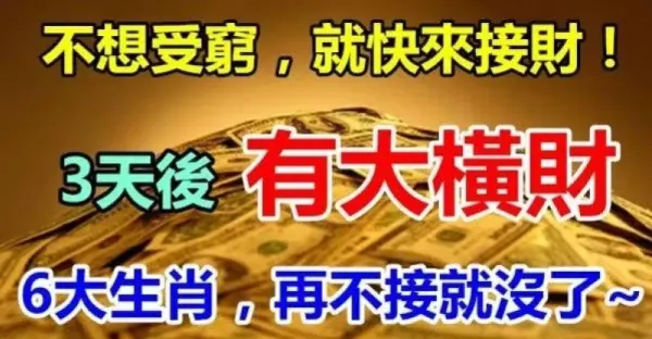 不想受窮就快來接財,三天後有大橫財,六大生肖再不接就沒了~