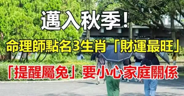 邁入秋季!命理師點名3生肖「財運最旺」 「提醒屬兔」要小心家庭關係