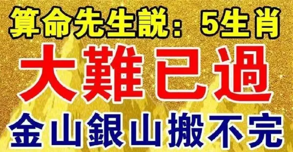 算命先生說:五個生肖大難已過,金山銀山搬不完~