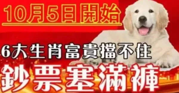 10月5日開始鈔票塞滿褲,六大生肖富貴擋不住