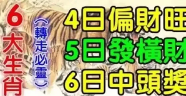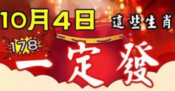 10月4日偏財旺,5日發橫財,6日中頭獎的生肖有你嘛