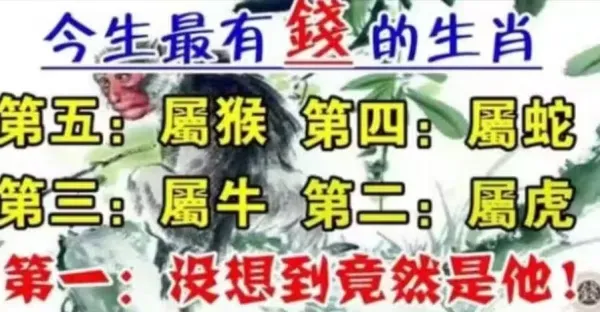 命中帶吉祥!今生最有錢的生肖排行!第一名最讓人意外!