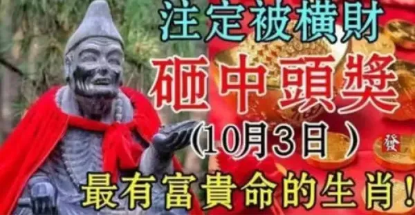10月3日開始註定被橫財(砸中頭獎)最有富貴命的生肖有你嘛