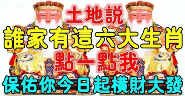 土地公說:誰家有這六大生肖,點一點我,今日起橫財大發!