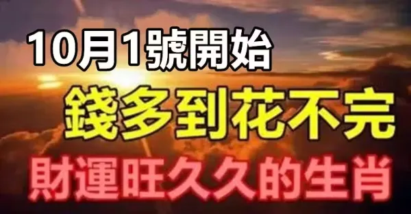 10月1號開始錢多到花不完,財運旺久久的生肖
