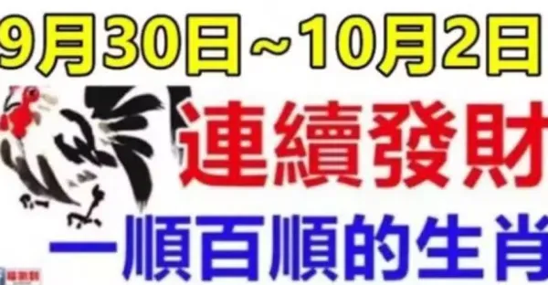 9月30日~10月2日連續發財,一順百順的生肖!