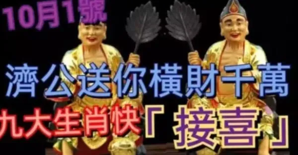 10月1號濟公送你一筆橫財千萬,九大生肖接喜了。