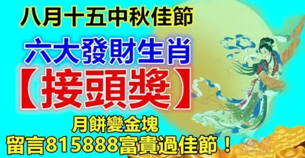八月十五中秋佳節,六大發財生肖接頭獎,月餅變金塊,富貴過佳節