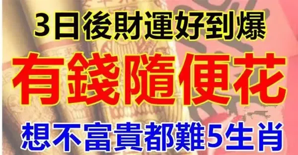 3日後財運好到爆,有錢隨便花,想不富貴都難,定腰纏萬貫5生肖 »