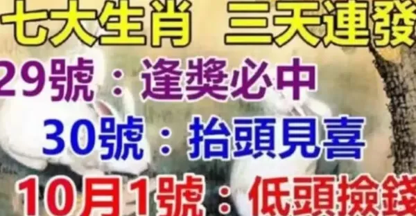七大生肖三天連發:9月29號逢獎必中,30號抬頭見喜,10月1號低頭撿錢好運不斷