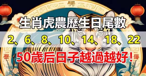 「生肖虎」晚年生活最好的農歷生日尾數「2、6、8、10、14、18、22」50歲後日子越過越好!