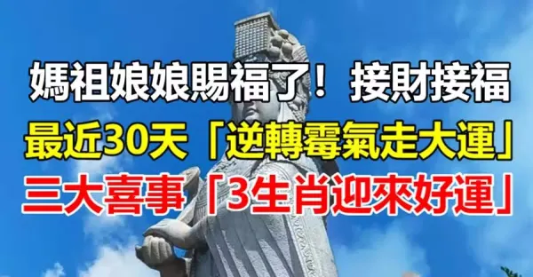 媽祖娘娘賜福了!最近30天「逆轉霉氣走大運」,三大喜事「3生肖迎來好運」快接財接福