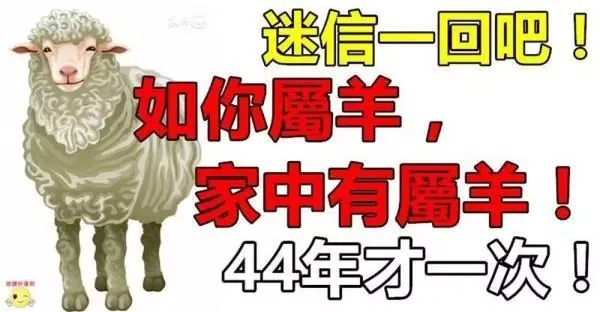 如果你不屬羊,你最愛的「屬羊」人,或家中有屬羊,44年才一次