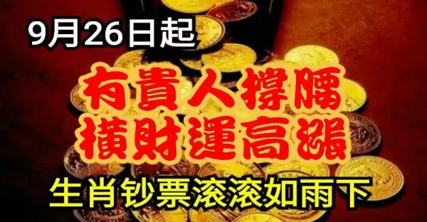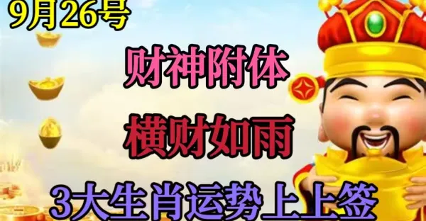 9月26號開始財神附體,橫財如雨,3生肖運勢上上籤