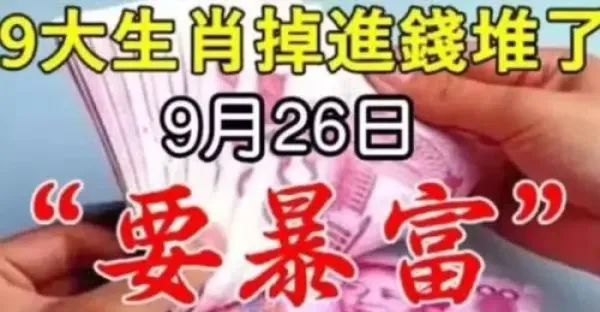 9月26日九大生肖掉進錢堆了,要暴富