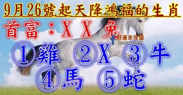 9月26號開始天降鴻福的生肖