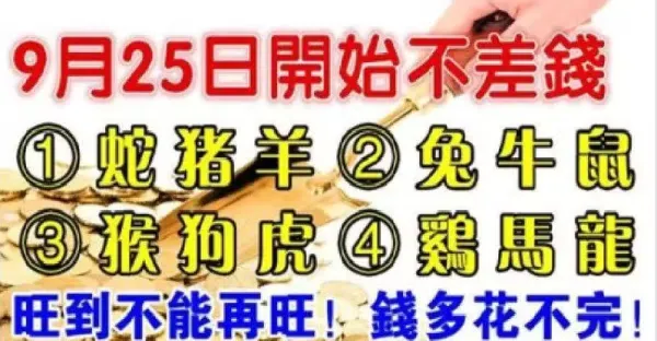 9月25,26號開始有六生肖財運旺到爆