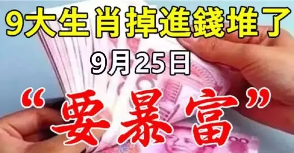 九大生肖掉進錢堆了,9月25日要暴富