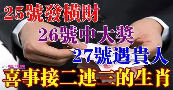 喜事接二連三的生肖,25號發橫財,26號中大獎,27號遇貴人