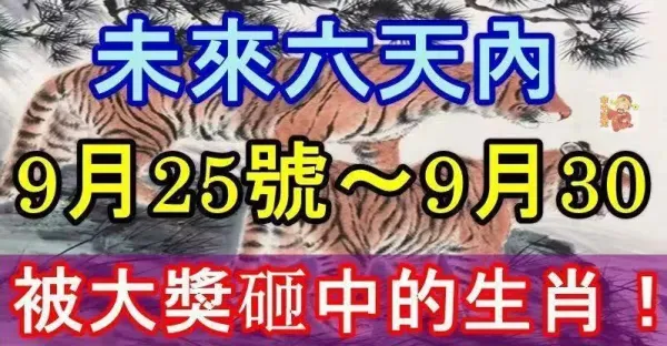 未來六天內【9月25號~9月30號】會被大獎砸中的生肖