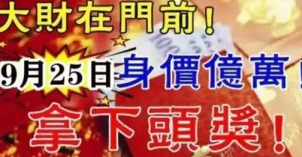 大財在門前,9月25日身價億萬,拿下頭獎~這些生肖的人橫財運一波又一波快來接!