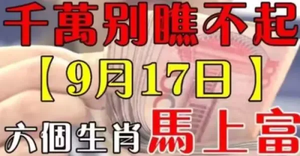 9月17日橫財來臨,九大生肖抓住財運到年底不愁錢