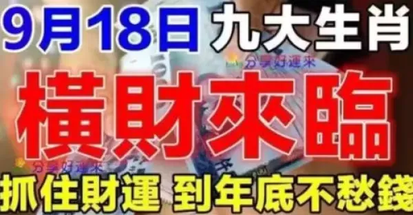 9月18日橫財來臨,九大生肖抓住財運,到年底不愁錢
