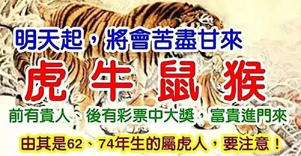明天起將會苦盡甘來,富貴進門的「4生肖」,尤其是62、74年生的屬虎人要注意! !