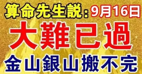 算命先生說:9月16日大難已過,下半年金山銀山搬不完有你嘛!