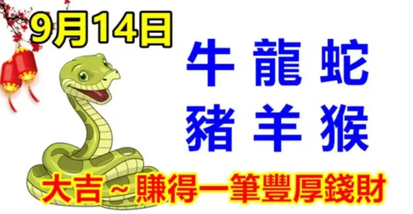 9月14,15,16日,六大生肖財運旺到中頭獎