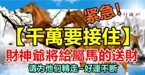 財神爺將給屬馬的送財,請為他們轉走~好運不斷