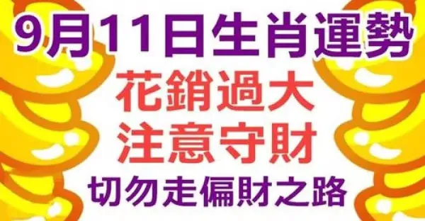 9月11日生肖運勢,花銷過大,注意守財,切勿走偏財之路