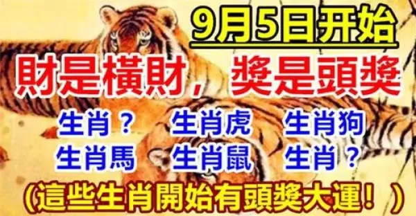 9月5日開始有頭獎大運的生肖,財是橫財,獎是頭獎