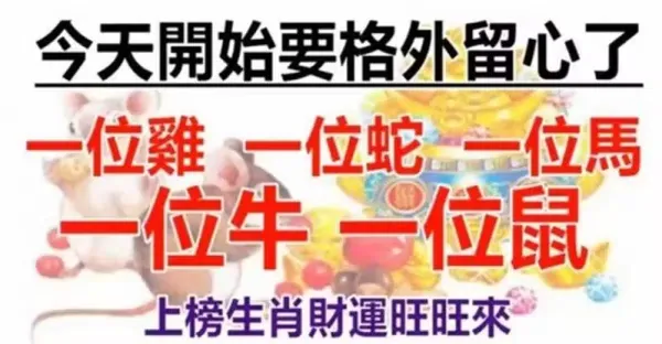 今天開始格外留心,一位雞,一位蛇,一位馬,一位牛,一位鼠財運旺旺來