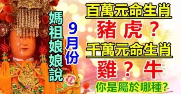 9月份:三生肖有百萬元命,三生肖有千萬元命