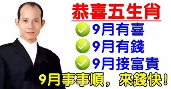 9月份有喜有錢接富貴,五大生肖事事順,來錢快