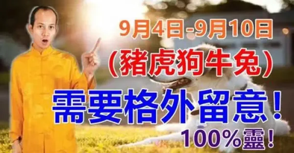 9月4日到9月10日(豬虎狗牛兔)需要格外留意