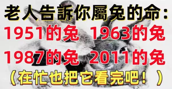 老人家偷偷告訴你:屬兔的命:51、63、87、11年,在忙也把它看完吧!
