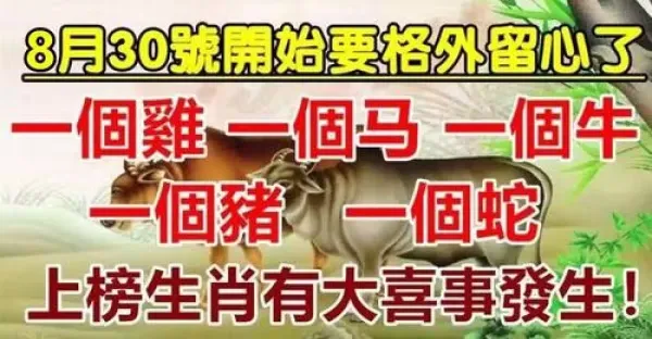 8月30號開始要格外留心了,一個雞,一個馬,一個牛,一個豬,一個蛇有大喜事發生