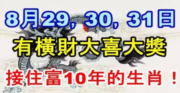 8月29,30,31日有橫財大喜大獎,接住富十年的生肖