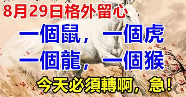 8月29日要格外留心了,一個鼠,一個虎,一個龍,一個猴今天必須轉啊