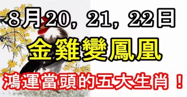 8月20,21,22日金雞變鳳凰,鴻運當頭的五大生肖