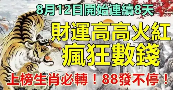 8月12日開始連續八天財運高高火紅,瘋狂數錢的生肖