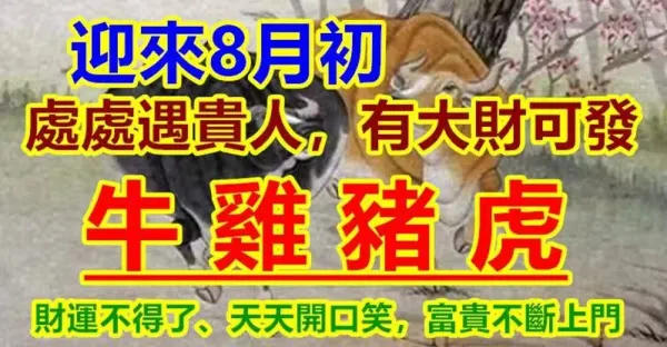 8月初處處遇貴人,有大財可發,四生肖財運不得了,富貴不斷上門