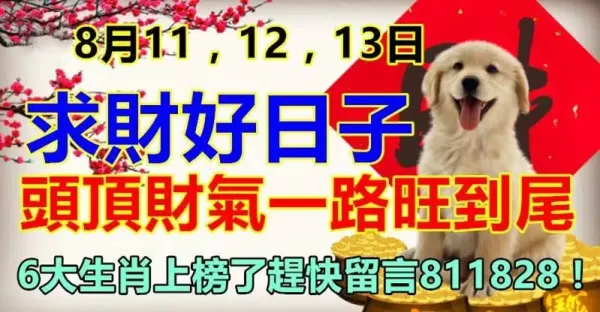 8月11,12,13號天生富貴命,命裡財運大爆發,六大生肖最讓人羨慕有你嘛