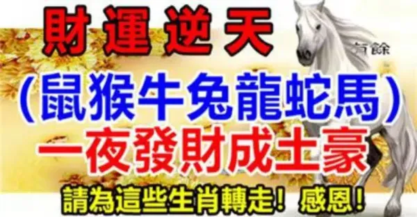 財運逆天生肖(鼠猴牛兔龍蛇馬)一夜發財成土豪,請為這些生肖轉走