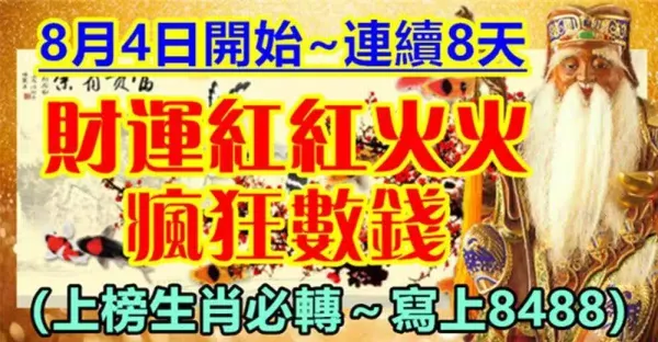 8月4日開始連續八天財運紅紅火火,瘋狂數錢的生肖