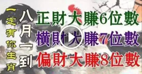 8月份逃不過橫財運的生肖有你嘛